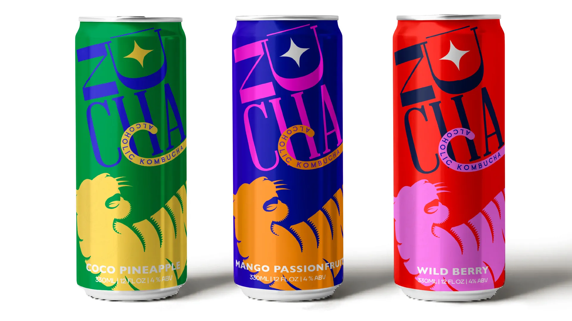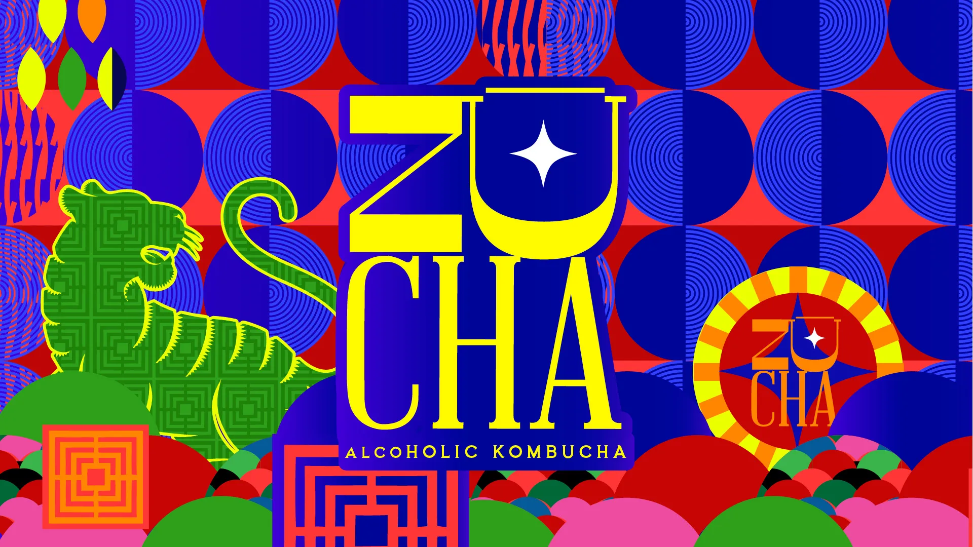 Bold color blocking, fluid type, and a playful tiger emblem create a world that feels alive — echoing the fizz, kick, and culture of ZŪCHA. Patterns inspired by fermentation and fruit textures add movement and depth across cans and touchpoints. The result is a striking, expressive identity that breaks away from kombucha norms, positioning ZŪCHA as a beverage that’s not just tasted but experienced — vibrant, social, and unmistakably alive.